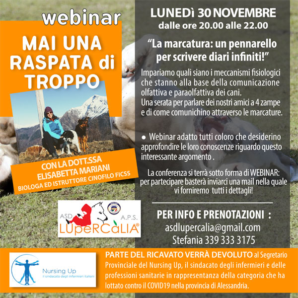 Elisabetta Mariani è una biologa e istruttore cinofilo, collabora con l’Istituto San Raffaele di Milano ed è docente in varie scuole di cinofilia. Da 5 anni anni a questa parte ha cominciato ad interessarsi alla fisiologia del cane e di come questa possa essere correlata all’universo comunicativo di quest’ultimo. Le marcature, ovvero tutto ciò che il nostro mondo umano repelle, posseggono una caratteristica informativa e comunicativa importante per la socialità del cane, così come l’acquisizione da parte di un organo complesso come il suo naso può rivelare quanto siano fondamentali per l’apprendimento.